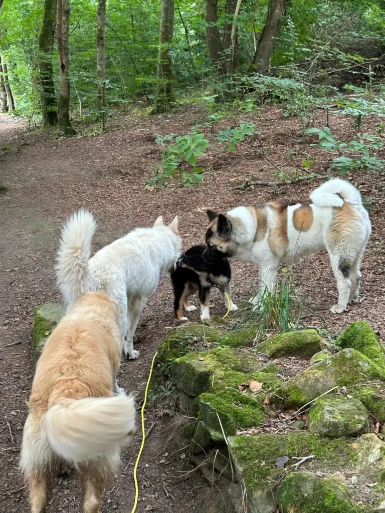 Ces balades collectives sont pensées pour aider votre chien à mieux se comporter en présence d’autres chiens, à canaliser son énergie tout en profitant d’un moment de plaisir